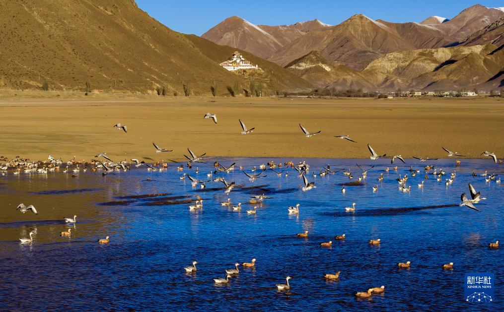 冬日時(shí)節(jié),拉薩市林周縣迎來(lái)大批越冬候鳥,黑頸鶴、斑頭雁、赤麻鴨等候鳥在河谷、湖泊等地覓食、休憩。