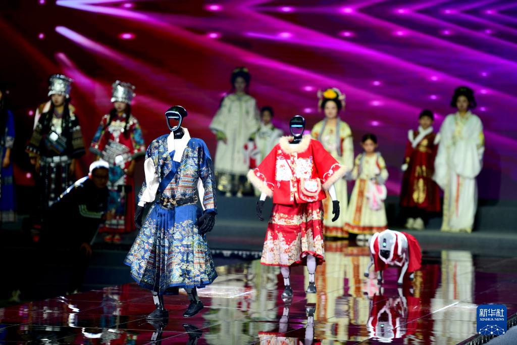 11月22日,機(jī)器人在2025秋冬漢服新品發(fā)布會(huì)上走秀。