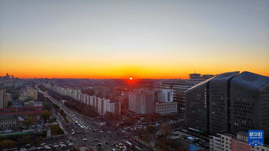 這是11月27日在北京宣武門附近拍攝的日出(手機照片)。