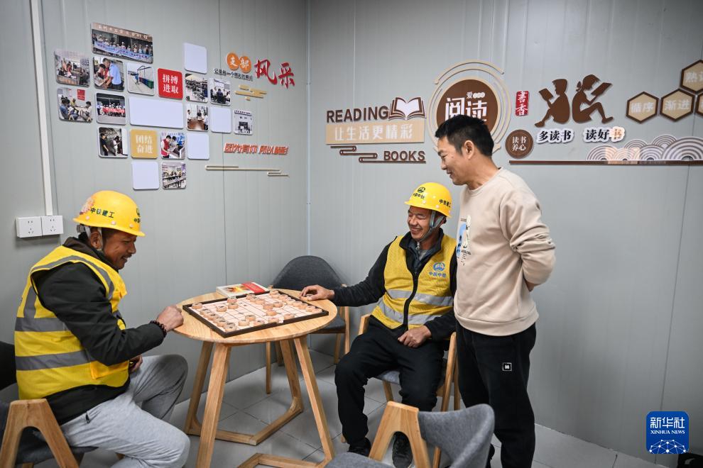11月25日,工人在蘇州北站新時代建筑工人社區工友之家下棋。