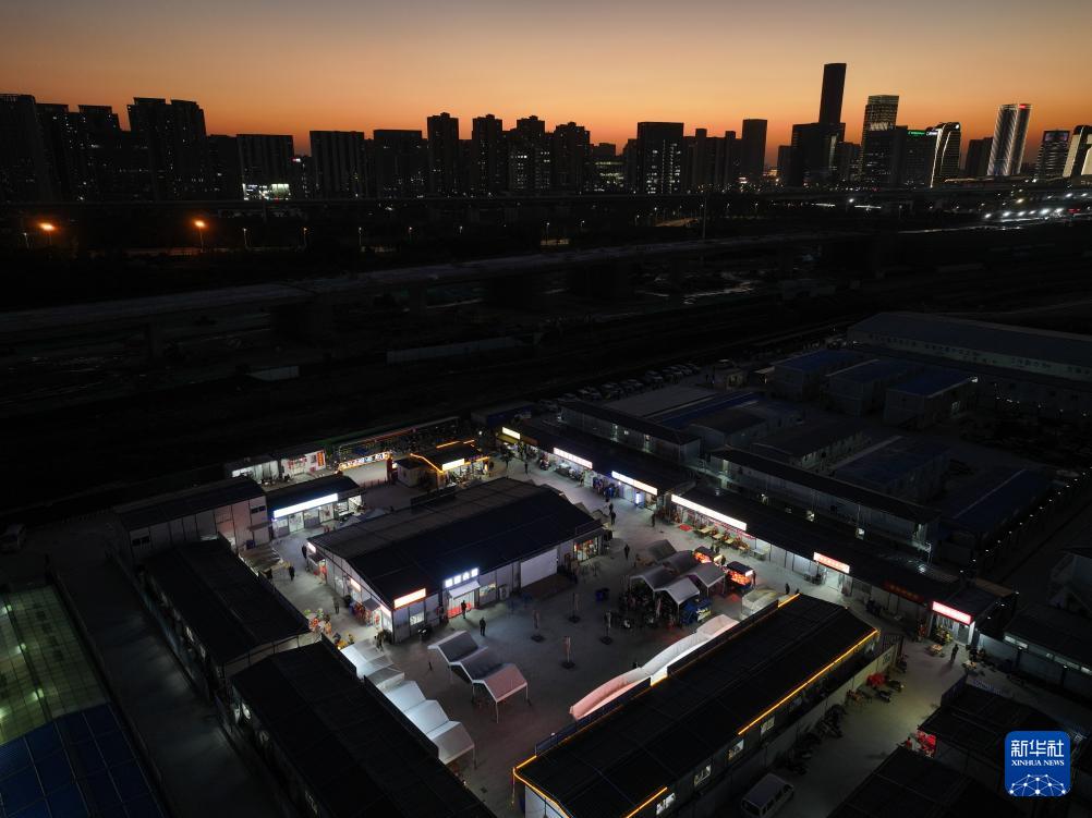 夜幕下的蘇州北站新時代建筑工人社區“商業街區”(11月25日攝,無人機照片)。