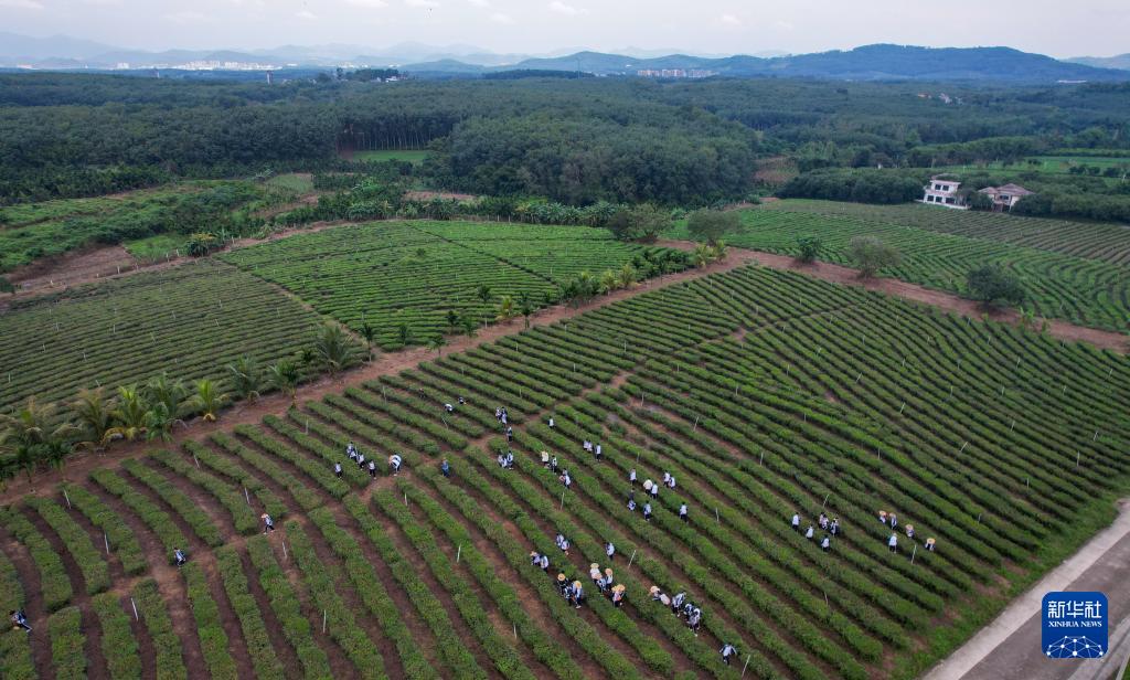 在海南省白沙黎族自治縣五里路茶園,學生在體驗采茶(11月20日攝,無人機照片)。
