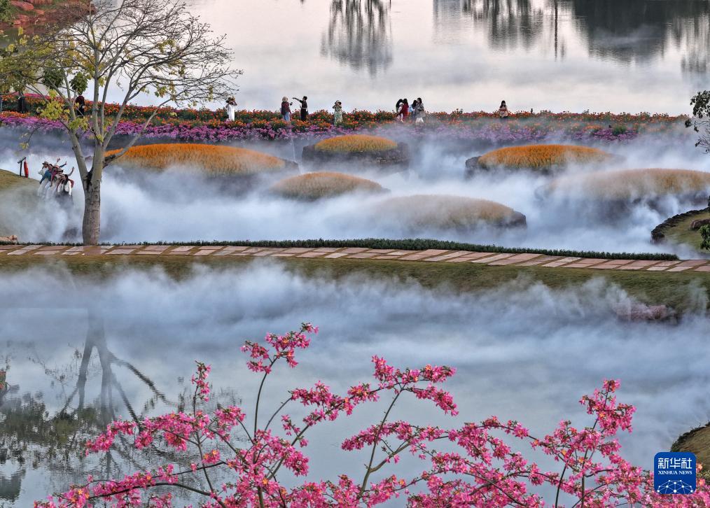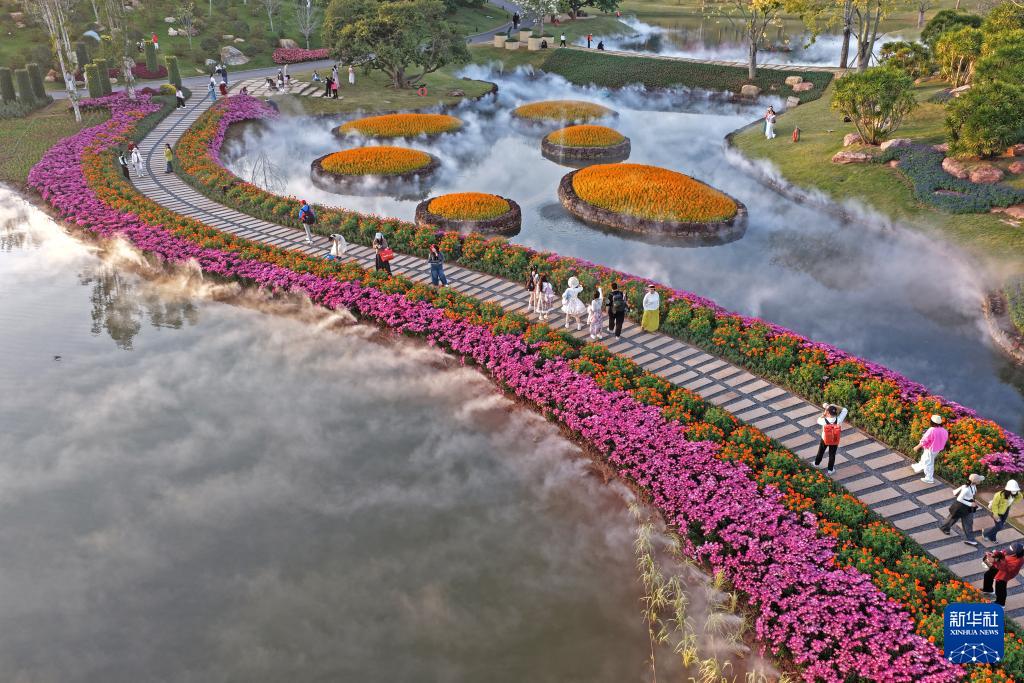 游客在廣西南寧市青秀山風(fēng)景區(qū)丘石花園賞花(11月26日攝,無人機照片)。