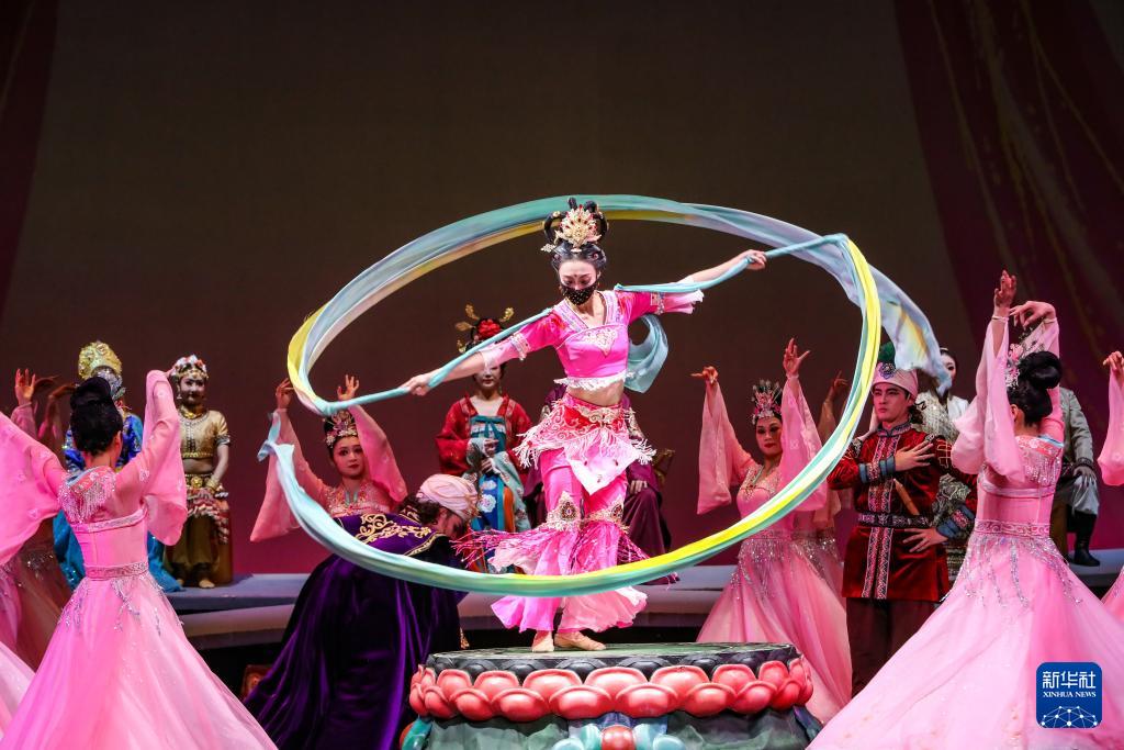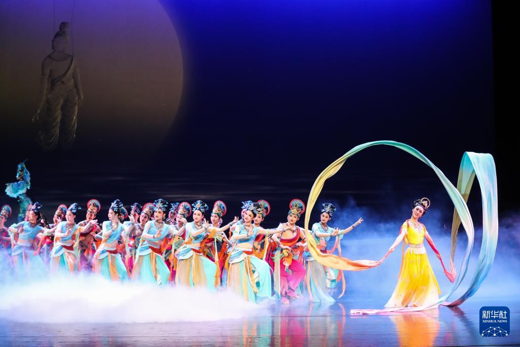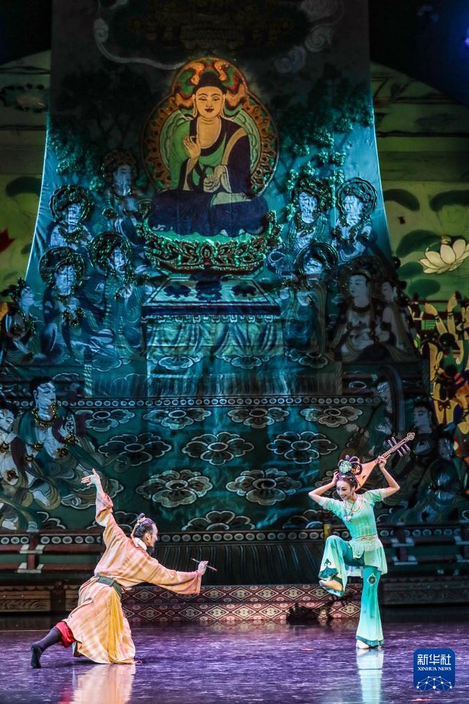 11月28日晚,演員在甘肅大劇院表演2025年新版舞劇《絲路花雨》。