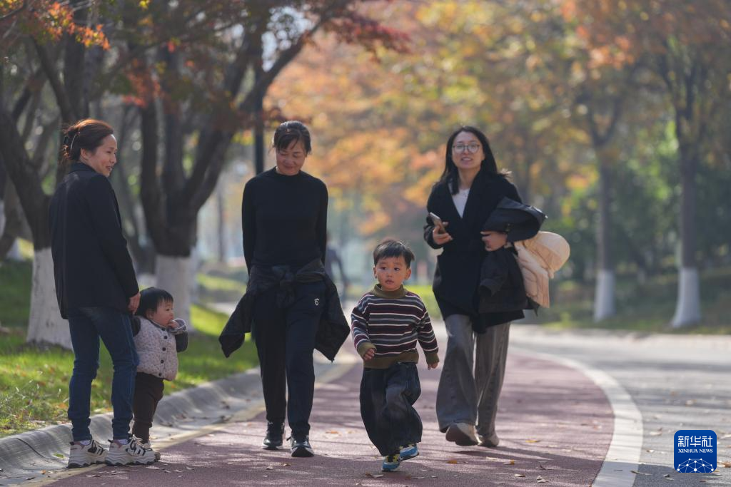11月30日,家長帶著小朋友在紹興迪蕩湖景區玩耍。