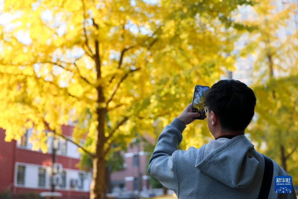 11月30日,市民在上海市黃浦區(qū)局門(mén)路拍攝銀杏。
