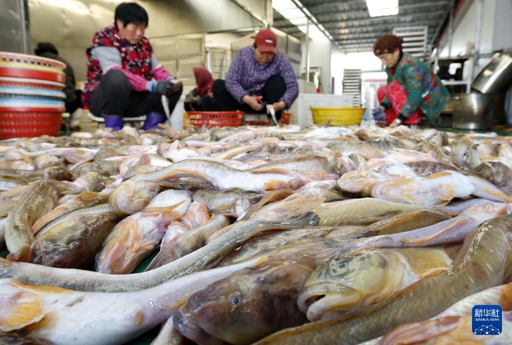 11月30日,河北省唐山市豐南區黑沿子鎮的漁民在加工海魚。