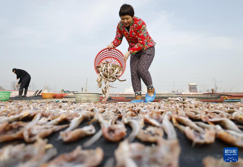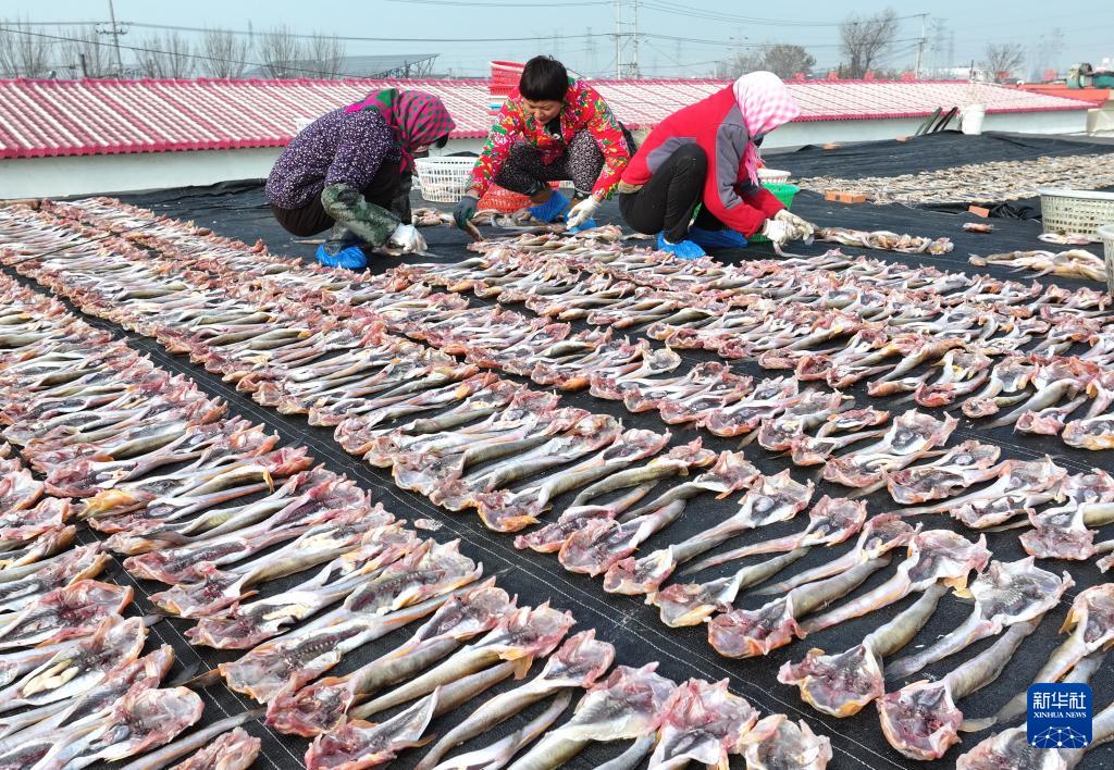 11月30日,河北省唐山市豐南區黑沿子鎮的漁民在晾曬魚干。