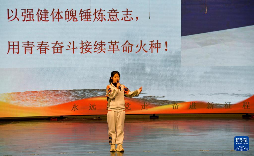 12月3日,“中流砥柱——中國共產黨抗戰文物展校園巡展”在北京市八一學校舉行活動閉幕式。閉幕式現場,來自首都大、中、小學的學生通過演講、快板、京劇、舞蹈等形式,生動展現紅色基因在新時代學子群體中的傳承與活力。