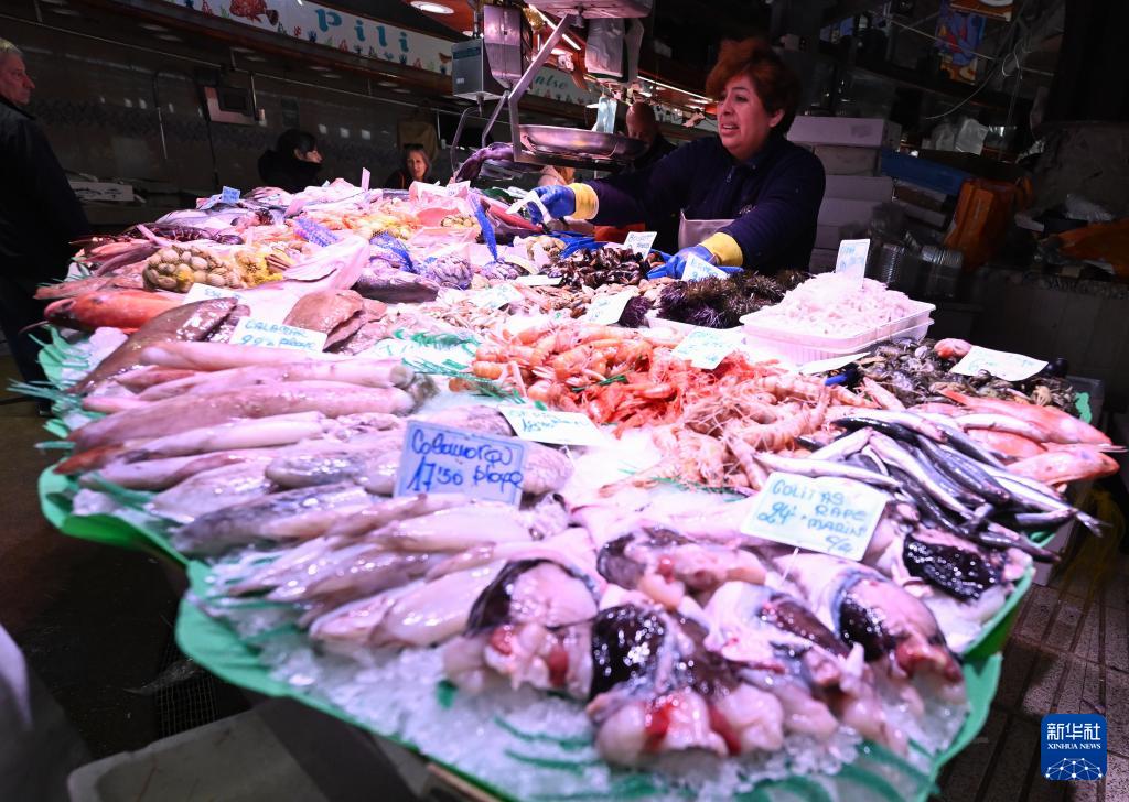 12月2日,攤販在西班牙巴塞羅那市中心的博凱里亞市場售賣海鮮。