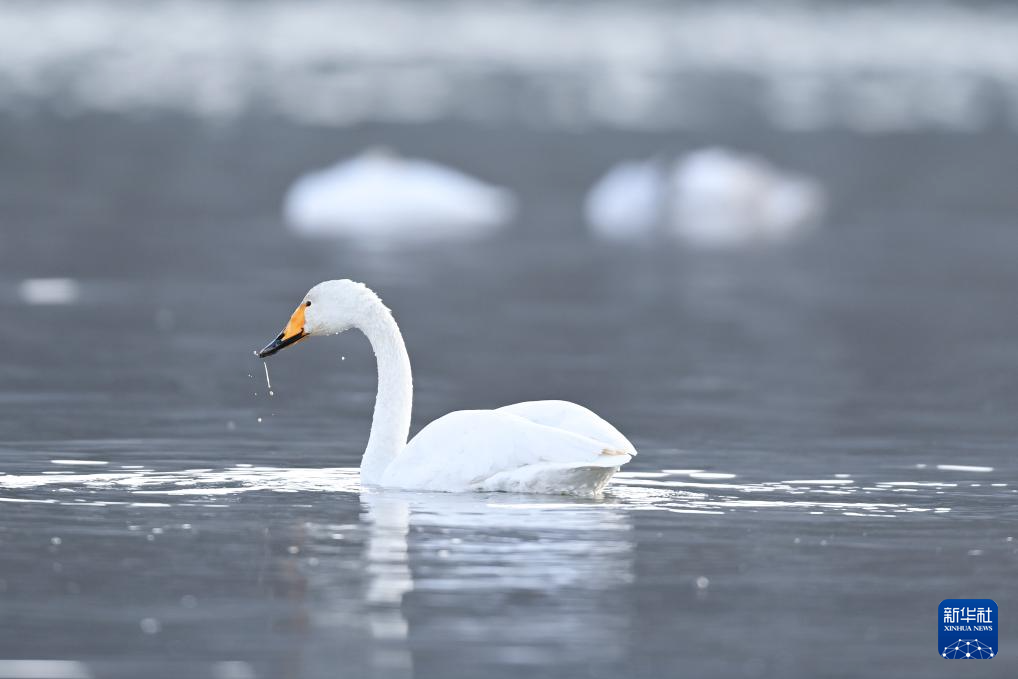 這是12月2日在化隆回族自治縣境內(nèi)的黃河邊拍攝的天鵝。