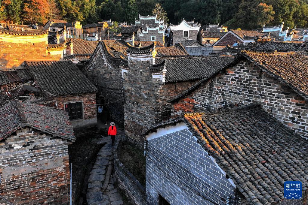 11月26日,游人在郴州永興縣板梁古村參觀游覽(無人機照片)。