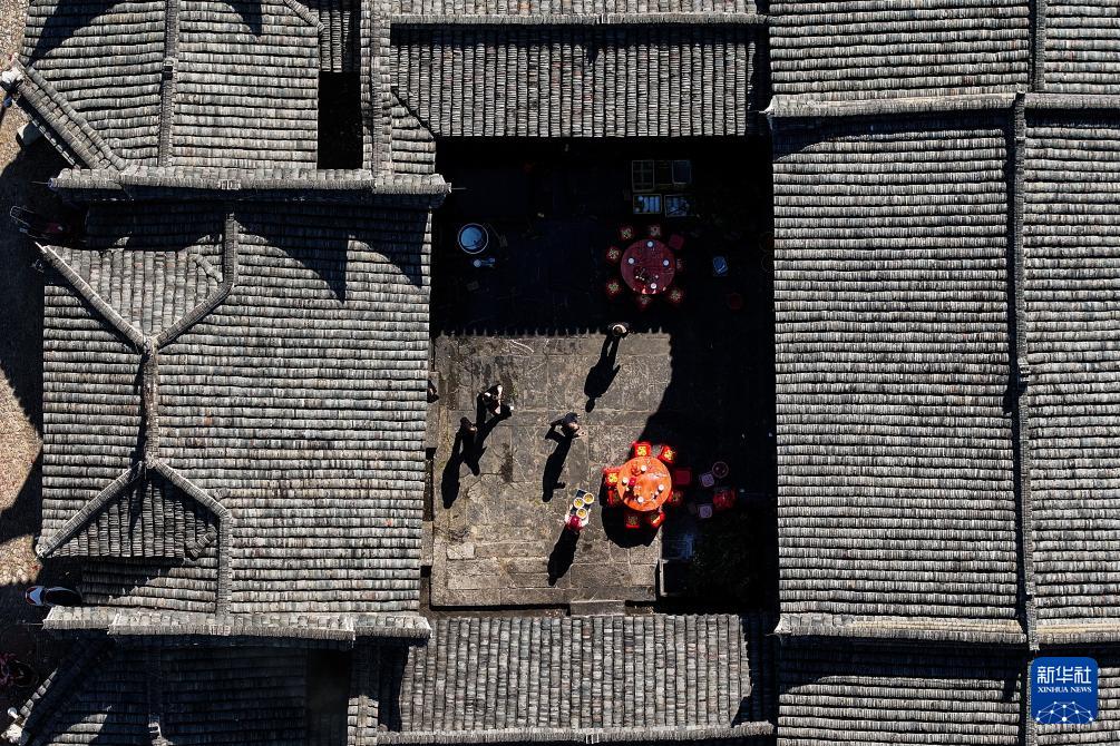 11月24日,人們在郴州汝城縣金山村一處古祠堂內(nèi)(無人機照片)。