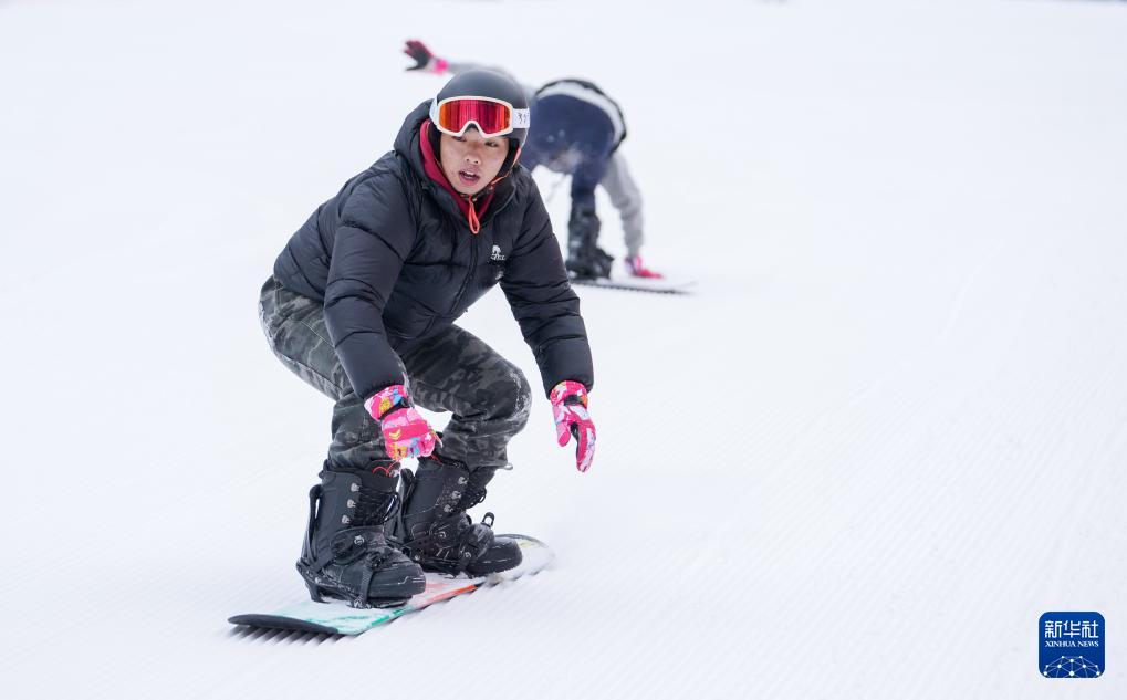 12月8日,游客在阿壩州汶川縣羌人谷滑雪場滑雪。