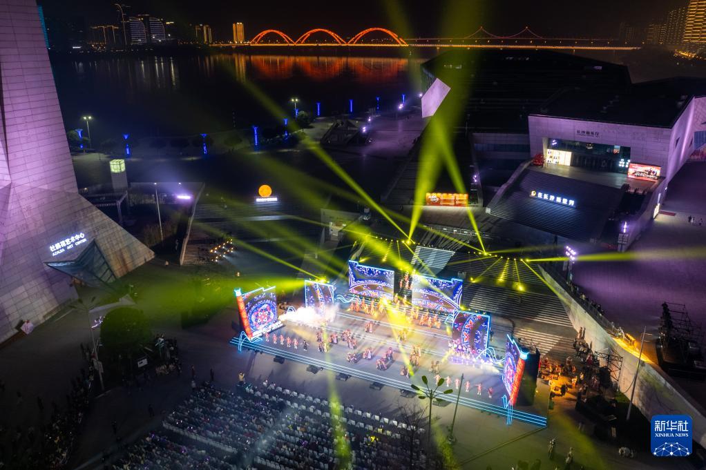12月9日拍攝的2025年湖南“歡樂瀟湘”優秀群眾文藝作品展演活動現場(無人機照片)。