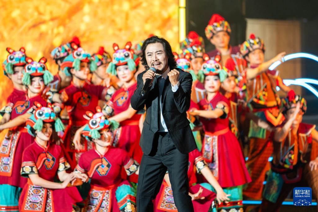 12月9日晚,歌手在展演活動上表演《村歌走四方》。