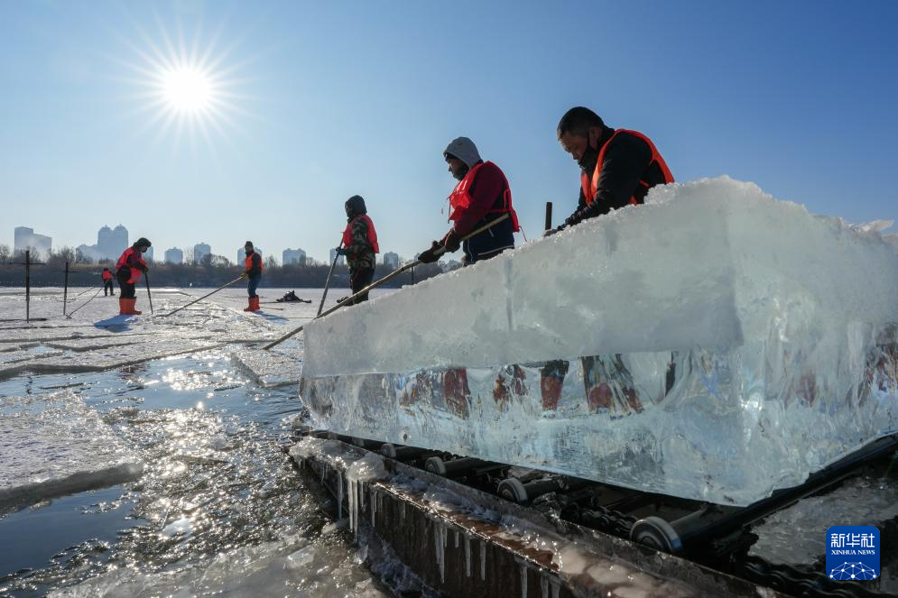 哈爾濱:采冰江上