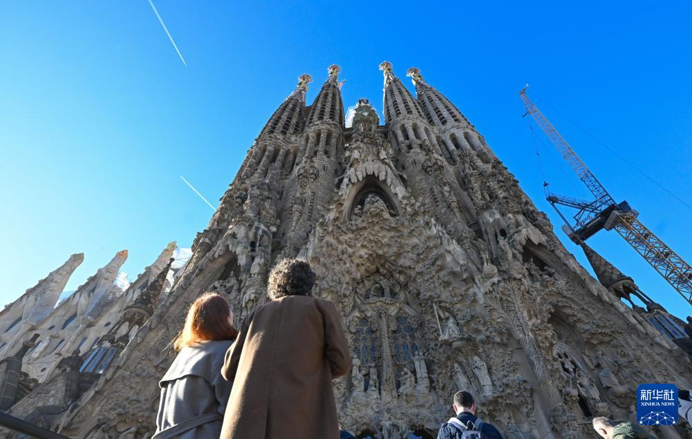 12月1日,在西班牙巴塞羅那,游客在圣家堂游覽。