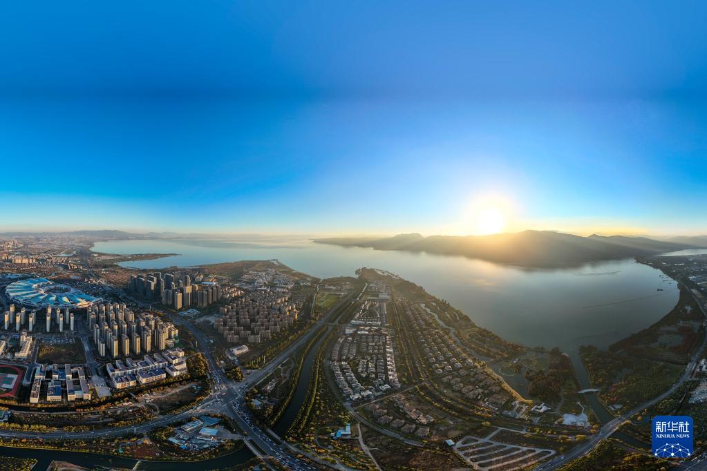 12月10日拍攝的滇池一景(無人機全景照片)。