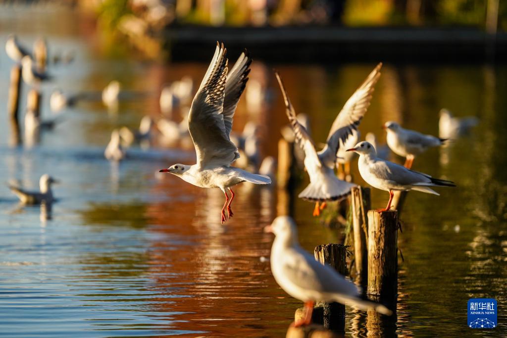12月10日在滇池畔的星海半島生態(tài)濕地拍攝的紅嘴鷗。