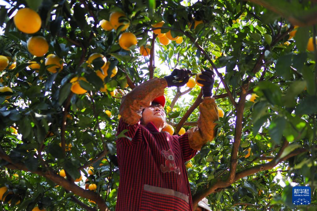 12月11日,在浙江省慶元縣竹口鎮黃壇水干果園區內,工人在采摘甜桔柚。