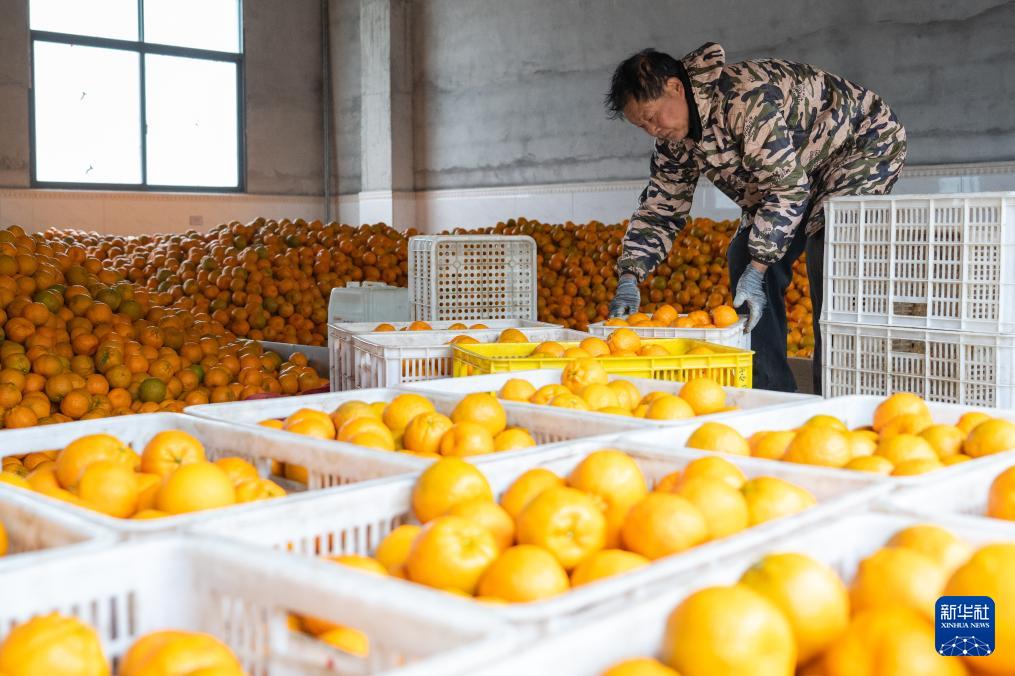 12月11日,在湖北省宜昌市長陽土家族自治縣漁峽口鎮(zhèn)巖松坪村,村民在整理分揀好的清江椪柑。