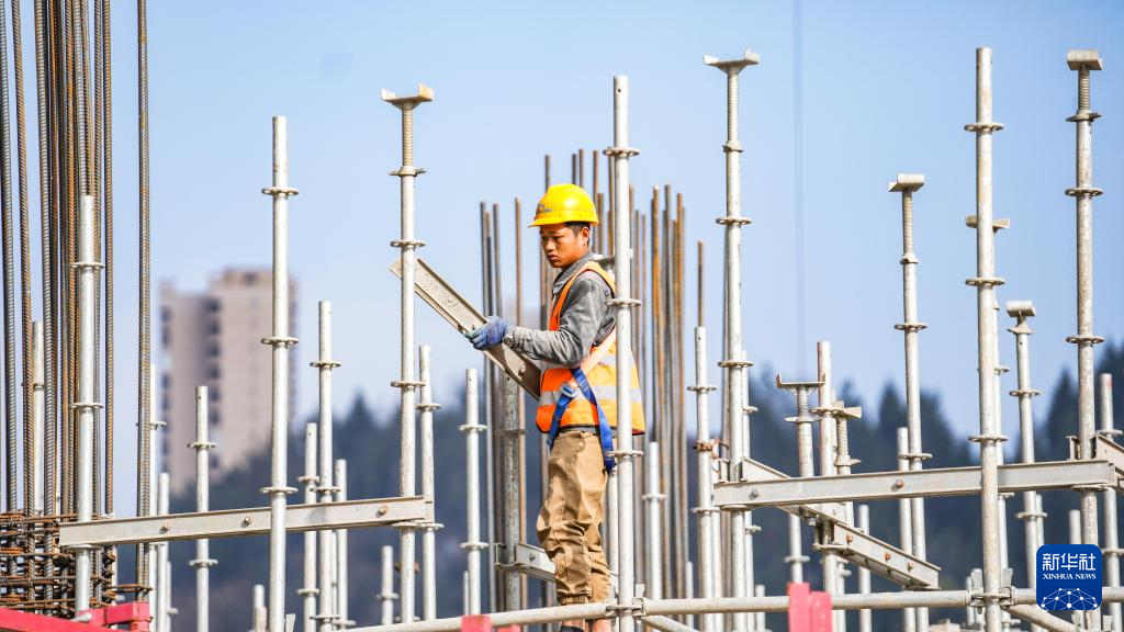 12月11日,工人在六盤水站站房及站場改造工程施工現(xiàn)場施工。