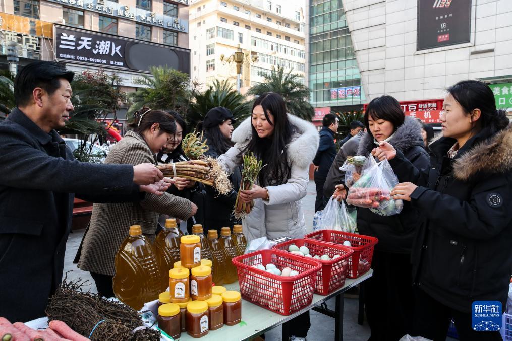 12月13日,居民在隴南市武都區(qū)“冬至大集”上選購特色農(nóng)產(chǎn)品。