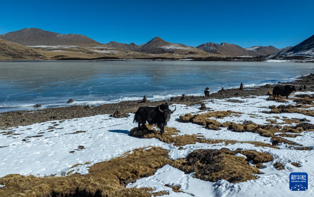 12月13日,牦牛駐足在思金拉錯湖岸(無人機照片)。