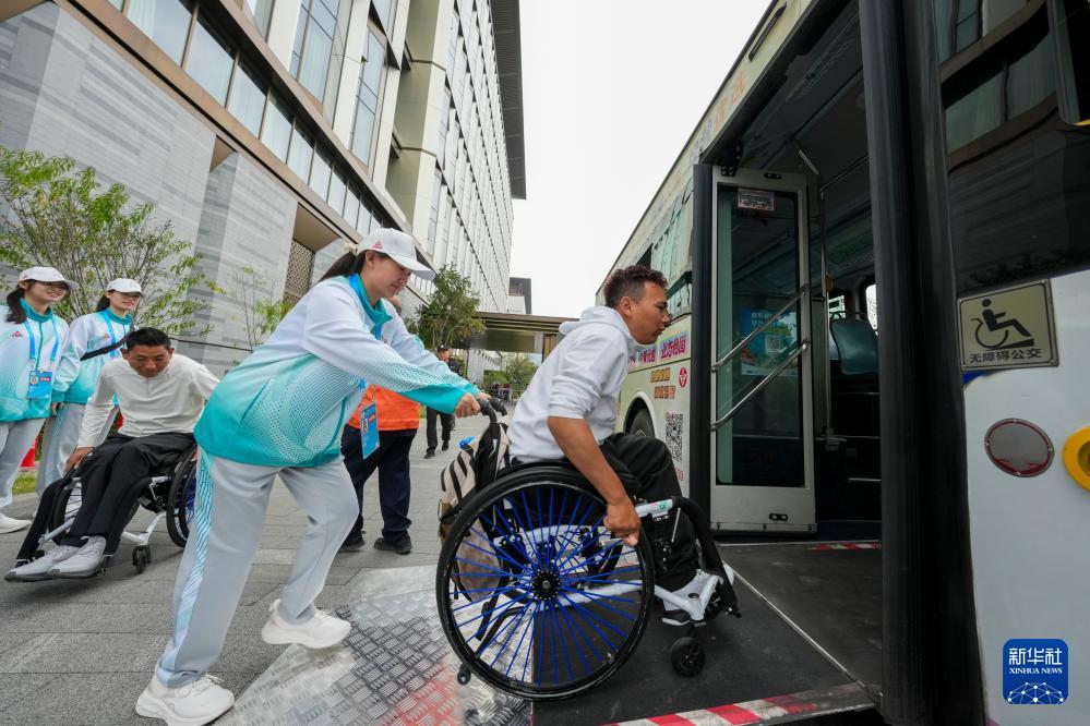 12月12日,西藏輪椅籃球隊球員在運動員酒店用完早餐后,去乘坐無障礙巴士前往賽場。