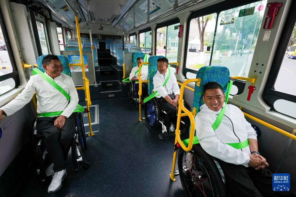 12月12日,西藏輪椅籃球隊球員乘坐無障礙巴士前往賽場。