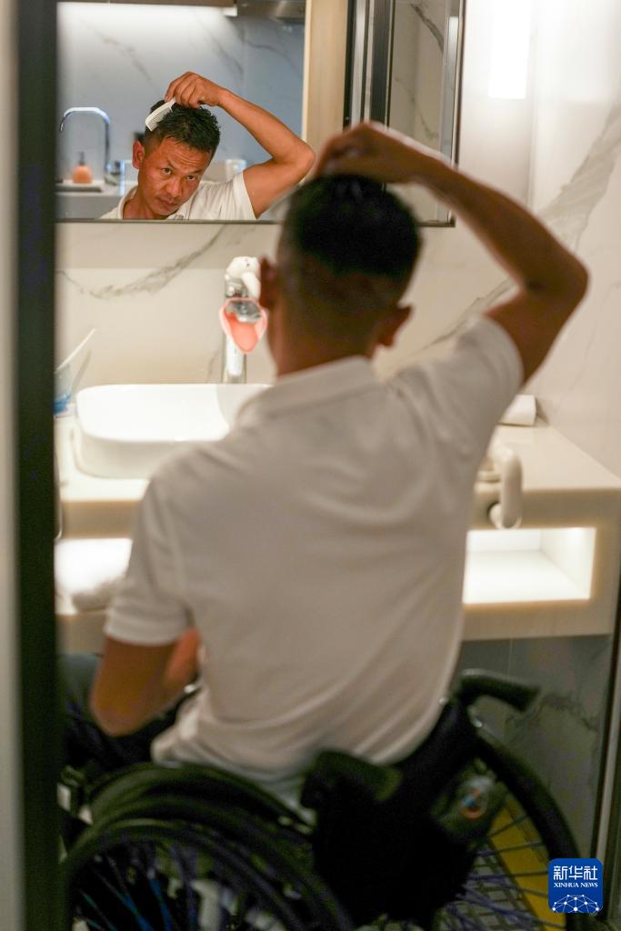 12月12日,西藏輪椅籃球隊球員旦增使用運動員酒店的無障礙洗手間。旦增表示“從酒店各個細節可以看出,工作人員是真正懂得我們殘障人士的需求。”