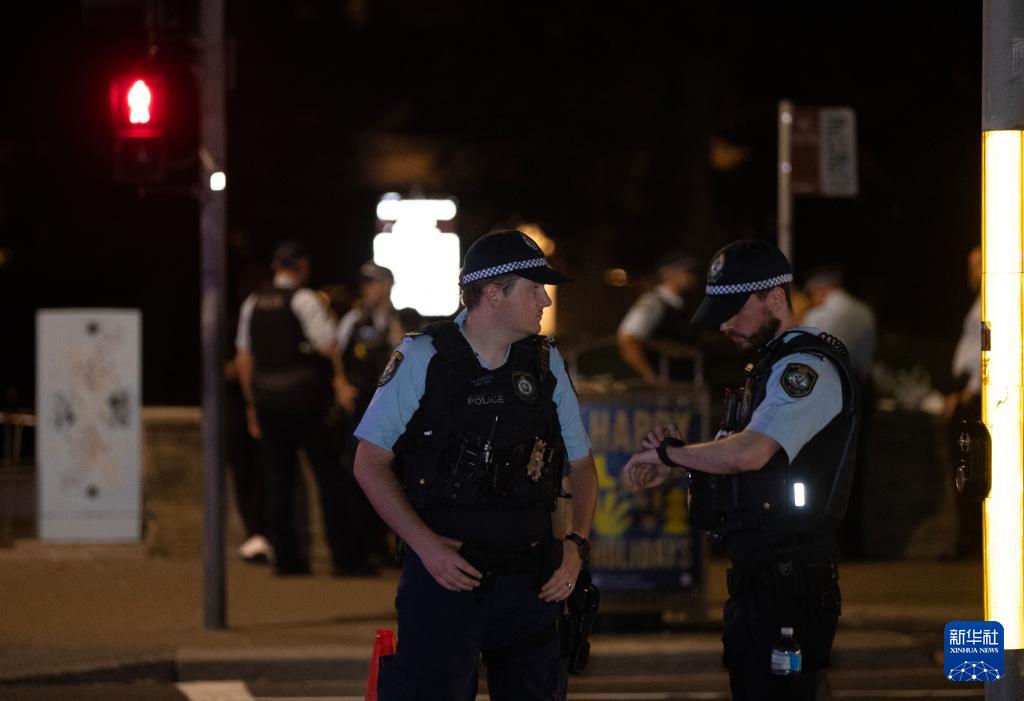 12月14日,在澳大利亞悉尼,警察在邦迪灘槍擊事件附近區域執勤。新華社記者 馬平 攝