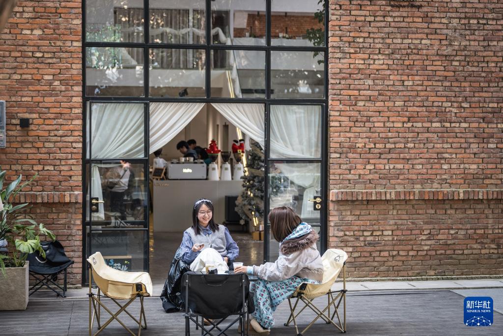 12月16日,人們在云南省曲靖市"重機印象"創意園一處咖啡館內喝咖啡。