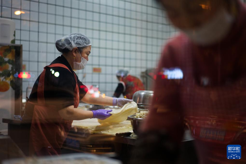 12月12日,在四川省廣元市一家涼面館,工作人員制作涼面。