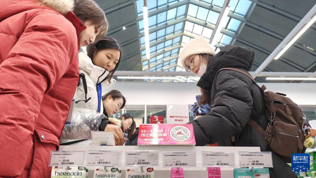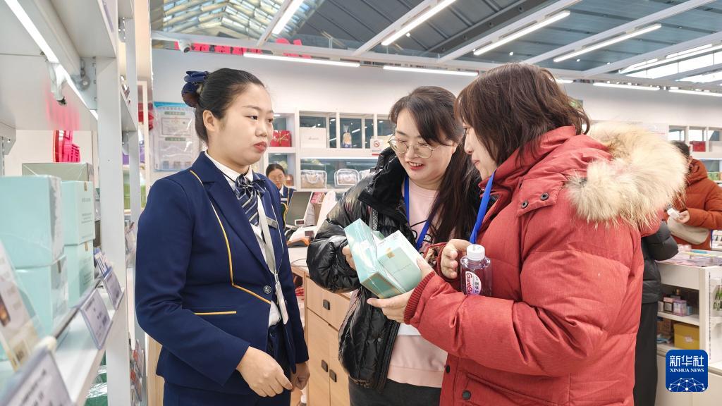 12月21日,消費(fèi)者在銀川火車站內(nèi)的中歐班列進(jìn)口商品(保稅)店內(nèi)選購(gòu)商品。