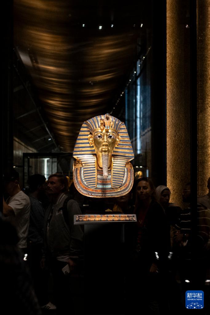 這是12月20日在埃及吉薩的大埃及博物館拍攝的法老圖坦卡蒙的黃金面具。