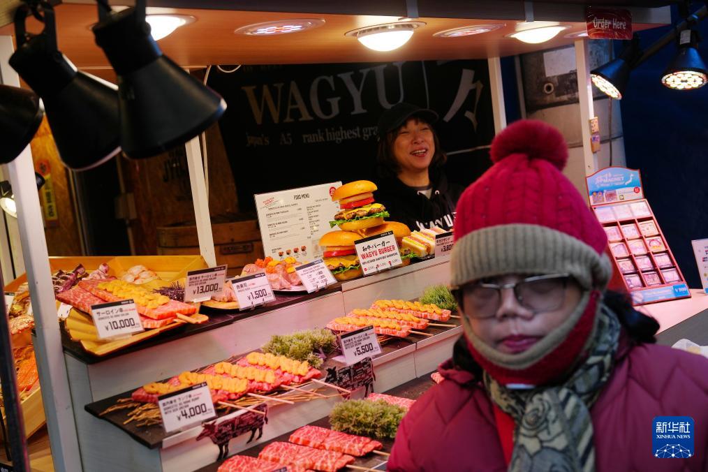 12月18日,在日本東京筑地站附近,一家店鋪的店員招攬生意。