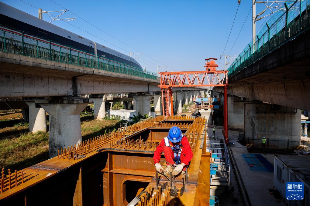 由中鐵十一局承建的廣(廣州站)南(廣州南站)聯(lián)絡線廣州南左右線大橋位于既有京廣高鐵和南廣高鐵線之間,施工環(huán)境復雜,安全風險高。項目設置多項安全措施,確保施工和高鐵運營安全無干擾。