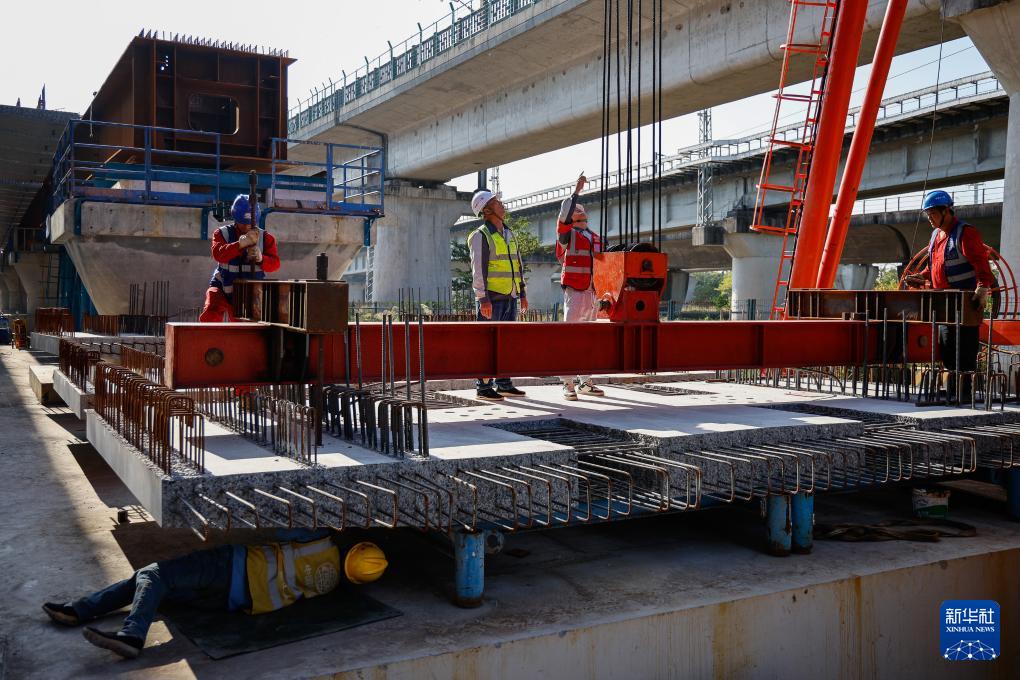 由中鐵十一局承建的廣(廣州站)南(廣州南站)聯絡線廣州南左右線大橋位于既有京廣高鐵和南廣高鐵線之間,施工環境復雜,安全風險高。項目設置多項安全措施,確保施工和高鐵運營安全無干擾。