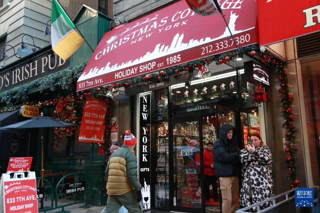 12月22日,顧客在美國紐約曼哈頓中城地區第七大道上的“圣誕小屋”禮品店內選購商品。新華社記者 劉亞南 攝