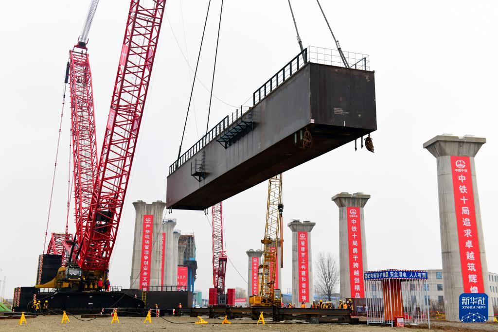 濰宿高鐵上跨日蘭高鐵鋼橫梁吊裝忙