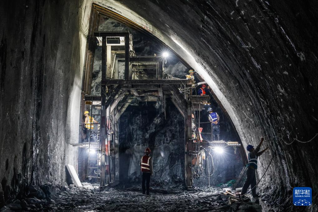 12月23日,施工人員在深圳外環田頭山隧道群右線隧道和斜井隧道交匯斷面開挖作業。