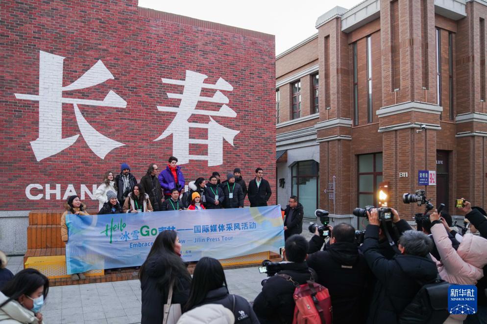 12月17日,國(guó)際媒體采風(fēng)團(tuán)在長(zhǎng)春市春京西歷史文化街區(qū)合影留念。