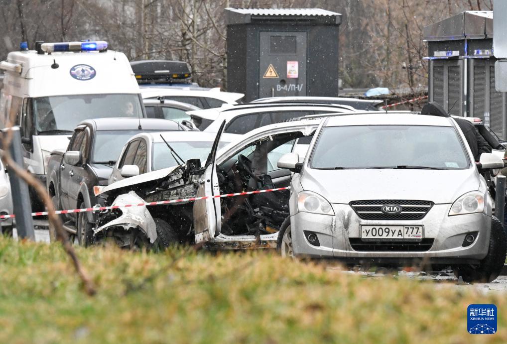 這是12月22日在俄羅斯首都莫斯科南部亞先涅瓦亞大街拍攝的汽車(chē)爆炸事件現(xiàn)場(chǎng)。