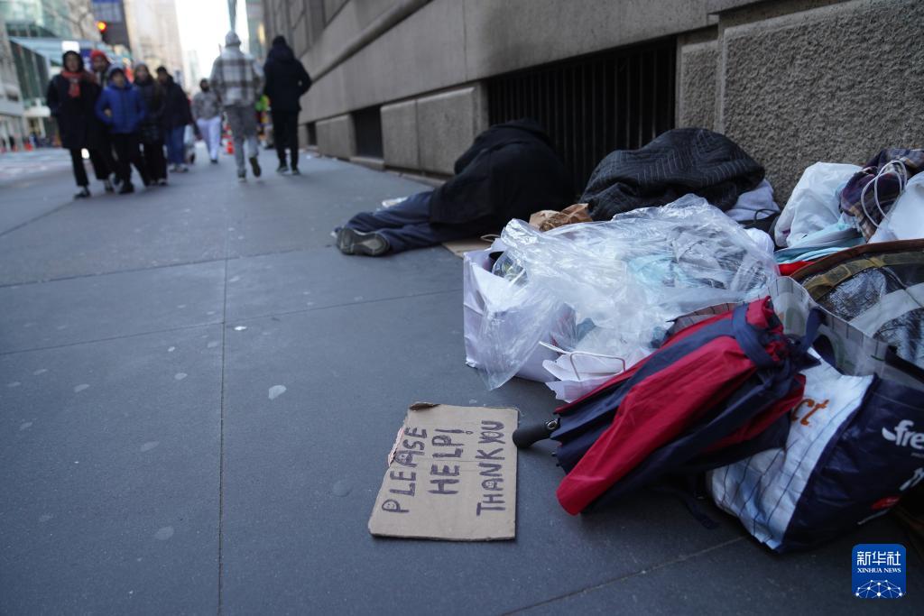 時(shí)值歲末,在美國(guó)紐約充滿節(jié)日氣氛的街頭,時(shí)常可見(jiàn)無(wú)家可歸者和其他尋求救助的人們。