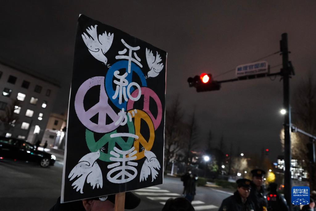 12月23日,在日本東京的首相官邸前,民眾參加抗議集會。