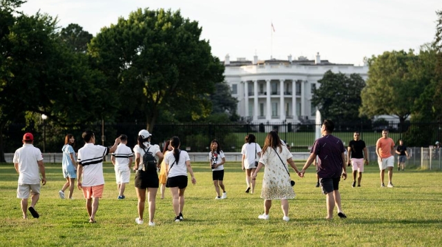 6月22日,游客在美國首都華盛頓的白宮附近游覽。