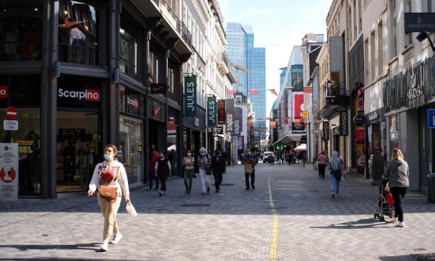 7月30日,一名顧客在比利時布魯塞爾的一家商店選購鞋子。