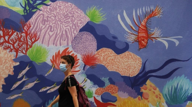 9月4日,在法國馬賽舉辦的第七屆世界自然保護大會上,人們參觀環保主題的藝術作品。